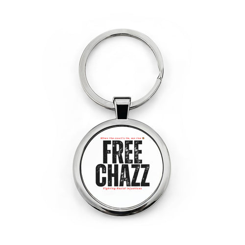 'FREE CHAZZ' Protest Message Keyring— Round Stainless Steel Keychain